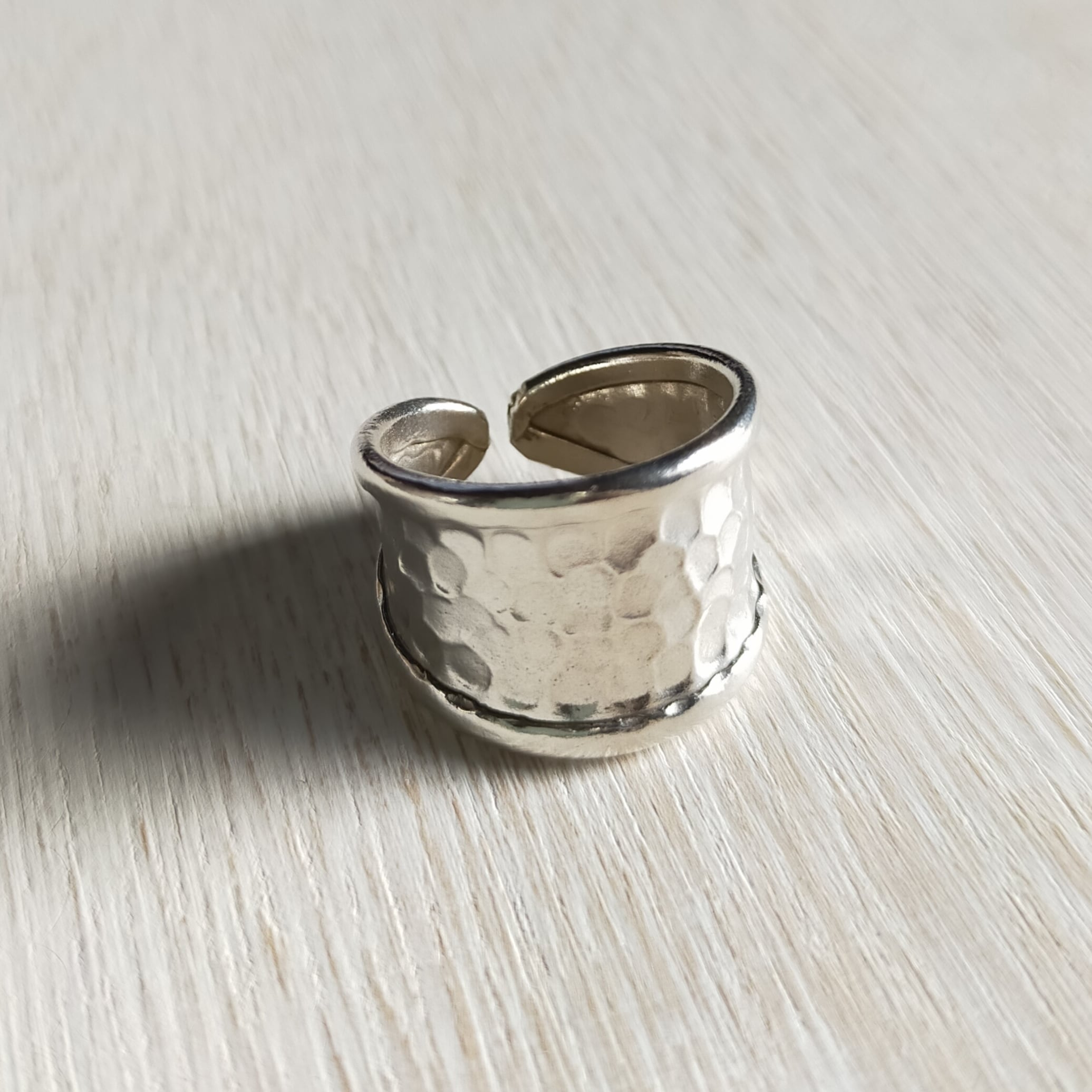 表面をハンマーで打った、キラキラ感の可愛いリングです。