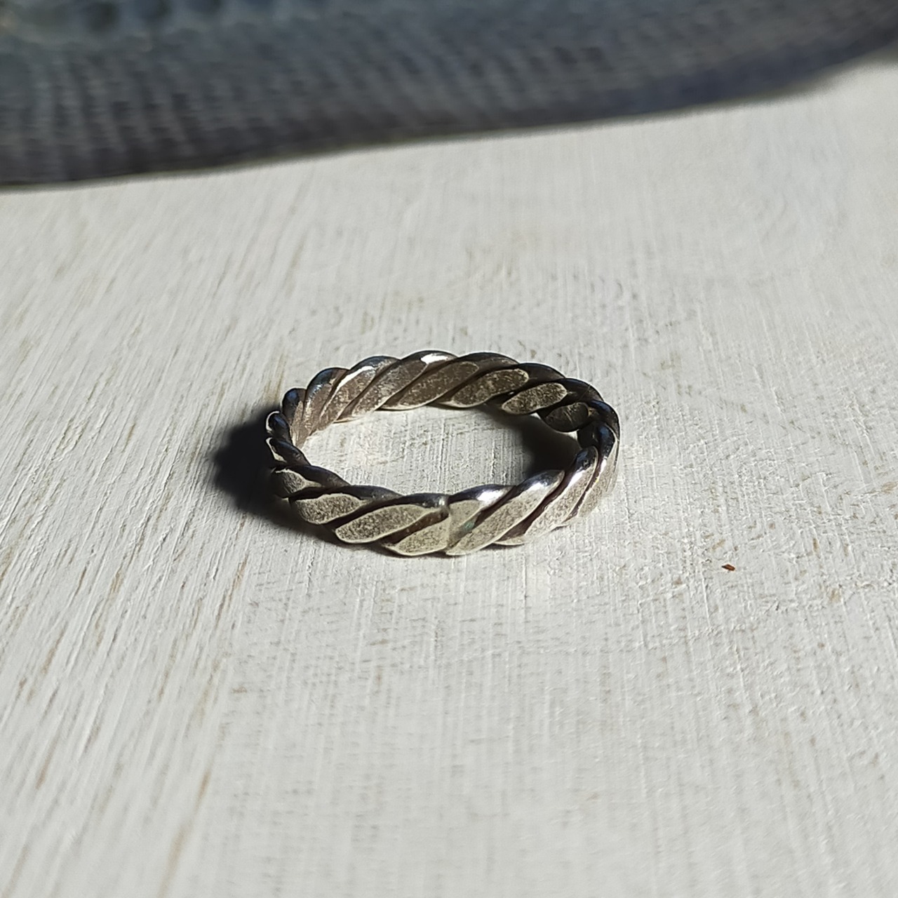 他のリングとも合わせやすい、細みのリングです。