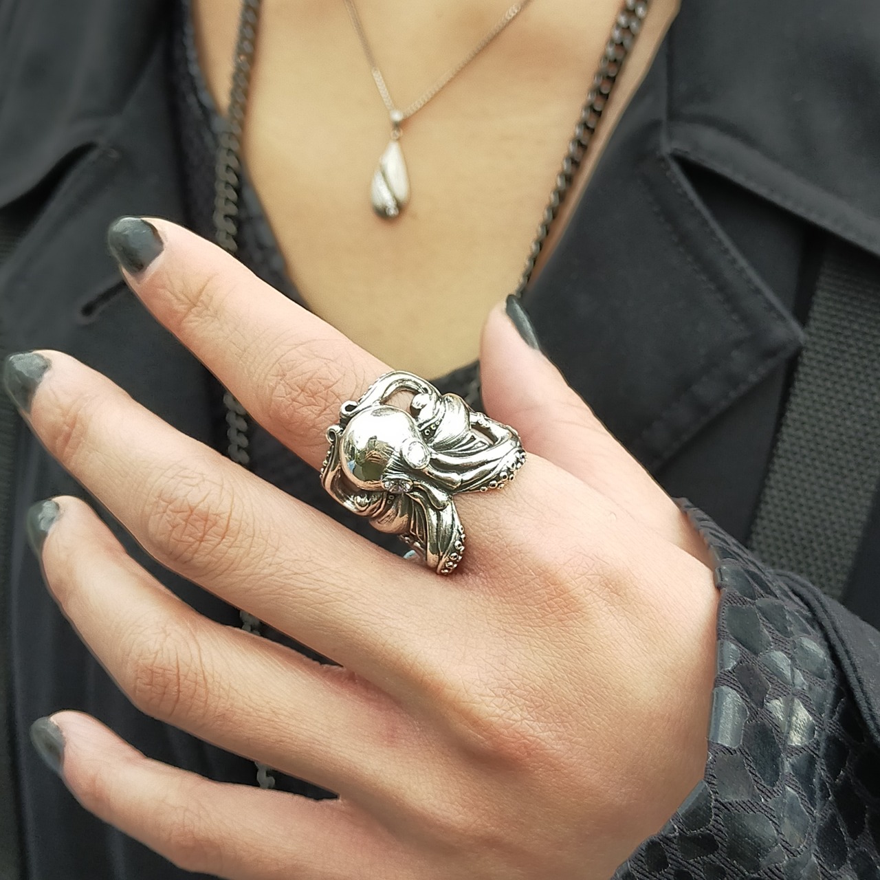 大きさ、デザインともに存在感抜群のリングです。