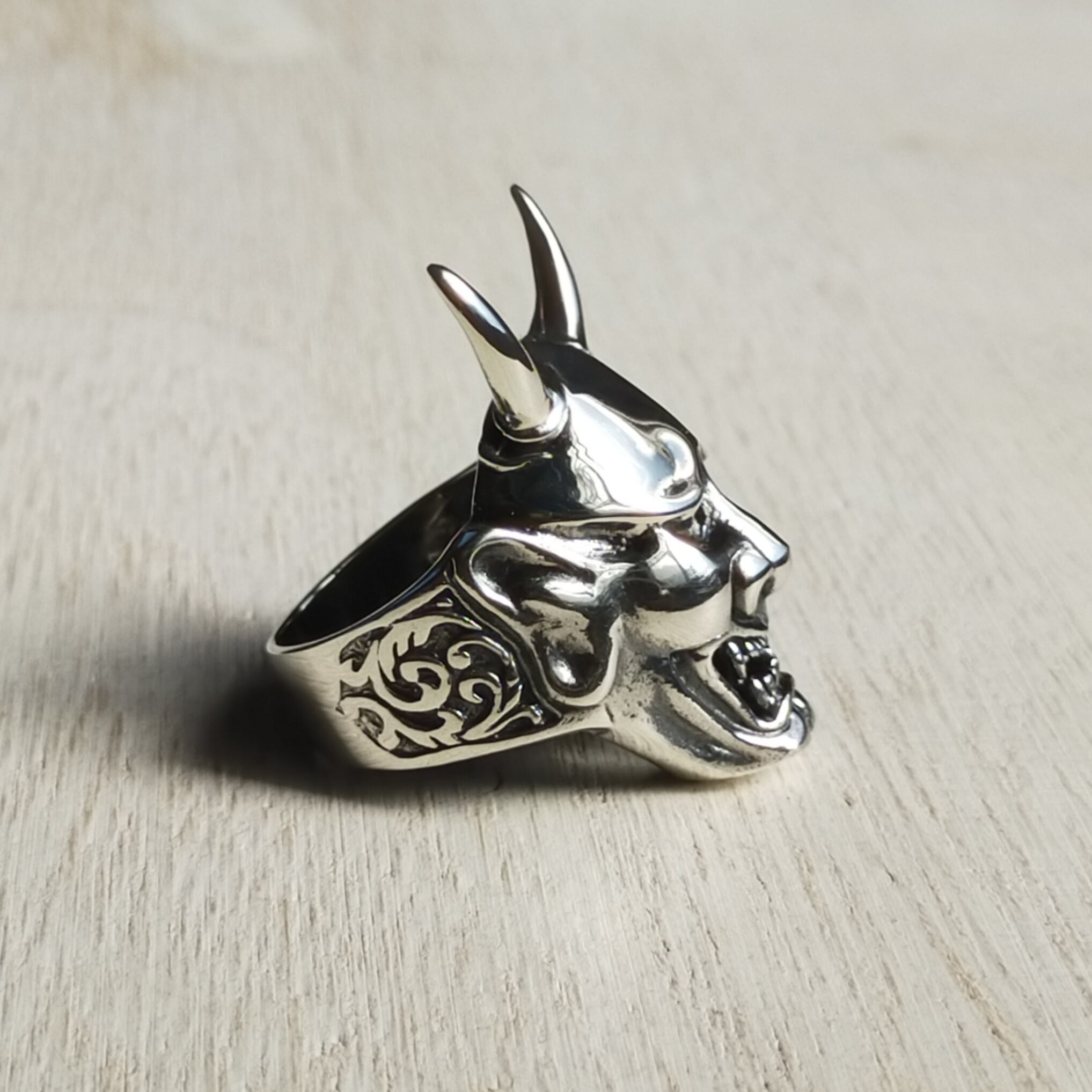 人の感情を豊かに表現した般若をモチーフにしたリングです。